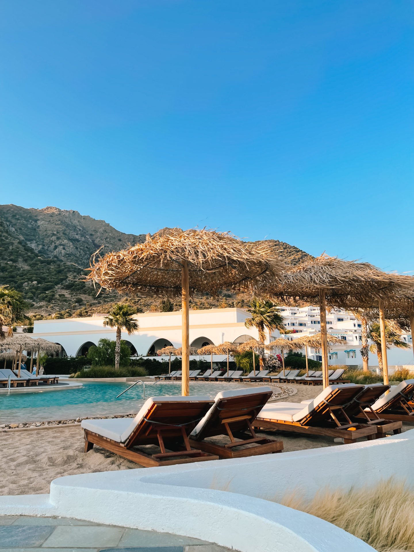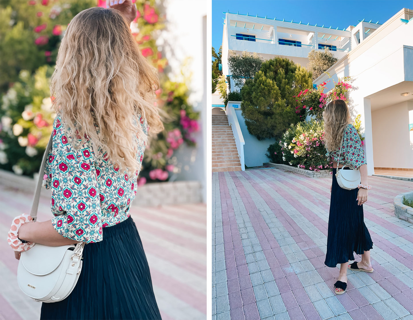Wie beschrieben sind gerade die renovierten Gemeinschaftsbereiche des Hotels wirklich super schön und modern angelegt. Der Stil – griechisches Flair gemischt mit modernen, stilvollen und minimalistischen Elementen sowie Boho-Dekoration – hat mir super gut gefallen und bot natürlich eine schöne Kulisse für meine Fotos und Outfit-Posts. Apropos Outfit-Posts – ich hatte euch damals nicht nur schon zahlreiche Fotos auf Instagram geteilt, sondern auch in diesem Beitrag all meine Griechenland-Looks zusammengefasst nach dem Sommer. Falls euch also etwas besonders gut gefällt, findet ihr alle Brands in den Outfit-Beschreibungen. ☺️