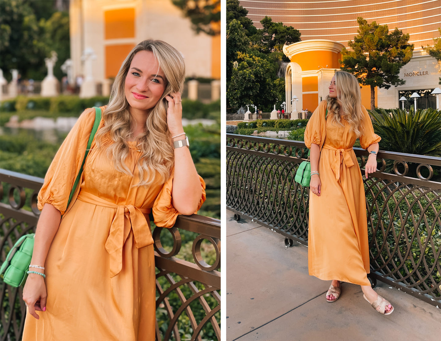 Welchen Sommertrend ich dieses Jahr super, super cool finde – auch wenn ich mich an die krassen Kontraste zueinander erst einmal gewöhnen musste, ist der Knallfarben-Trend. Ich liebe Farben schon immer und ich bin das komplette Gegenteil von den Personen, deren Kleiderschrank nur aus Schwarz, Weiß, Beige und anderen, gedeckten Tönen besteht. Der Einsatz von Knallfarben wie Royalblau, Knallgrün, strahlendem Pink und intensivem Orange in diesem Sommer gefällt mir sehr gut – und so habe ich mich im vergangenen Urlaub in Las Vegas an einen Look gewagt, der die Töne Orange und Grün vereint.