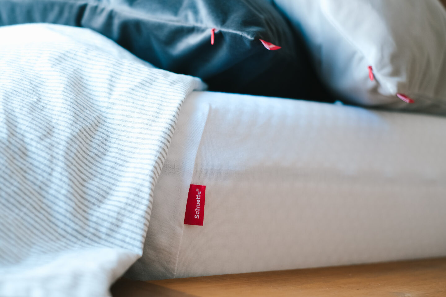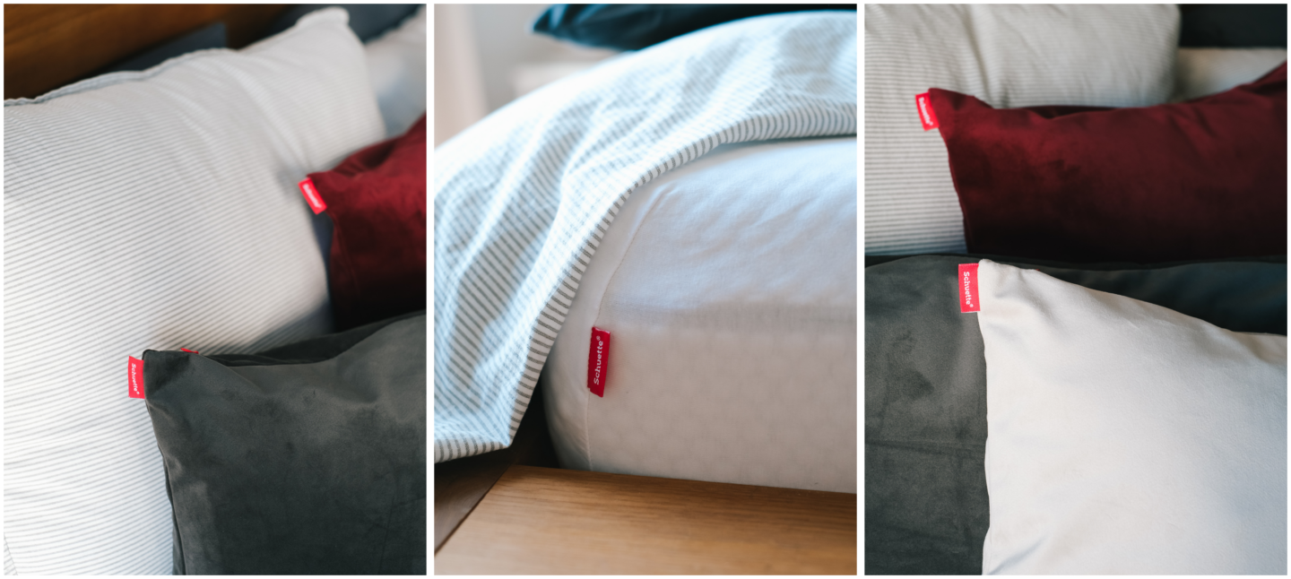 Ich habe also gezielt in ein paar neue, qualitative Textilien von Schuette® investiert, um meinen Schlafkomfort zu erhöhen: hochwertigen Spannbettlaken, die perfekt sitzen, sich angenehm auf der Haut anfühlen und das Bett optisch wie haptisch aufwerten – sowie passende, samtige Kissenhüllen für noch mehr Gemütlichkeit.