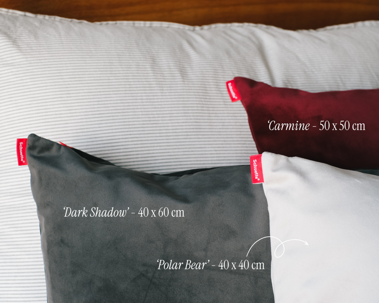 Die Kissenbezüge der Millenium Velvet Kollektion gibt es in 20 verschiedenen Farbtönen und sechs verschiedenen Maßen – heißt, auch hier könnt ihr euch individuell eure Wunschfarben und -größen kombinieren. Unsere Auswahl ist die folgende: